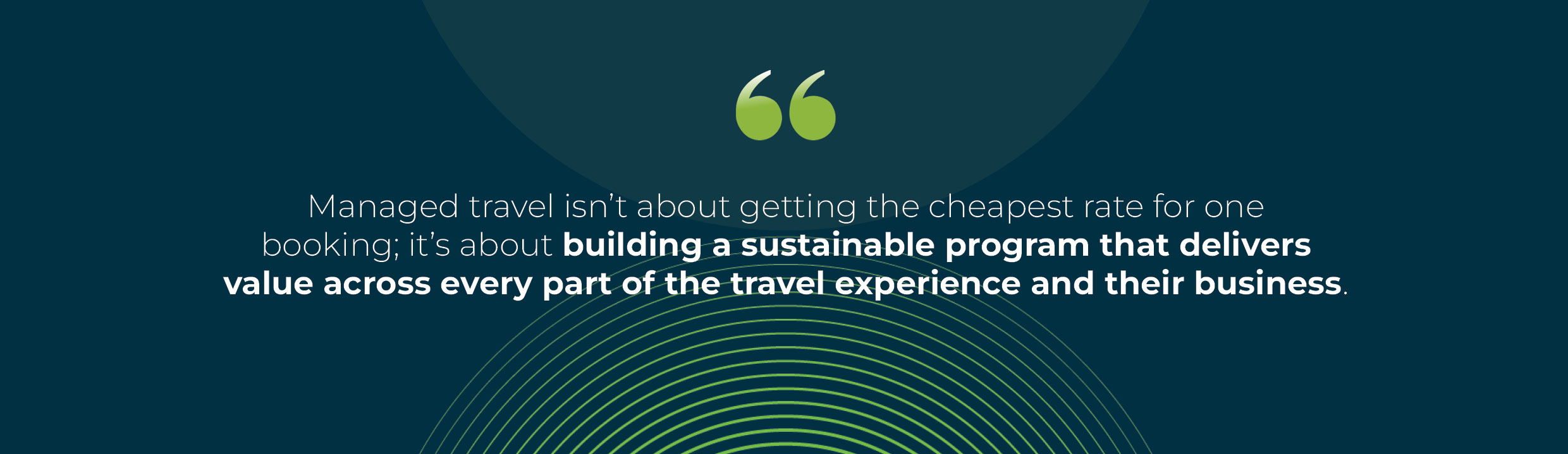 Managed travel isn’t about getting the cheapest rate for one booking; it’s about building a sustainable program that delivers value across every part of the travel experience and their business. SMEs are not thinking about things like: