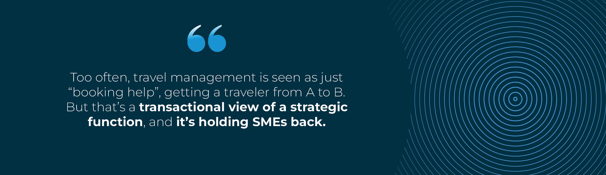 In my experience, the issue is a lack of education. Too often, travel management is seen as just “booking help”, getting a traveler from A to B. But that’s a transactional view of a strategic function, and it’s holding SMEs back.