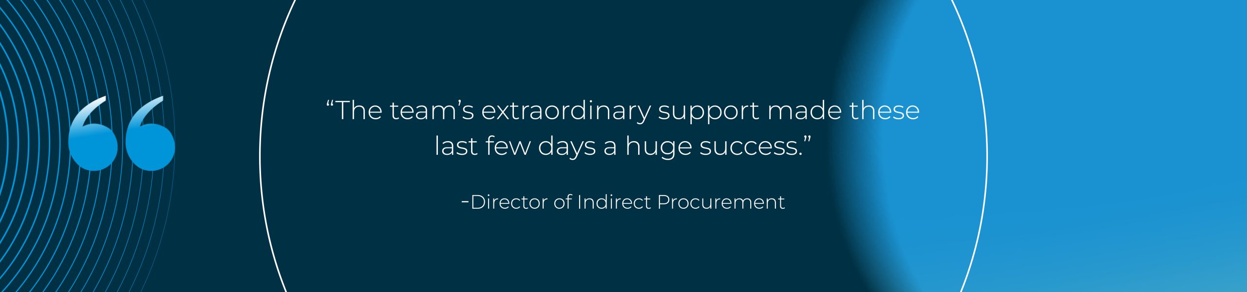 “The team’s extraordinary support made these last few days a huge success.” Director of Indirect Procurement.
